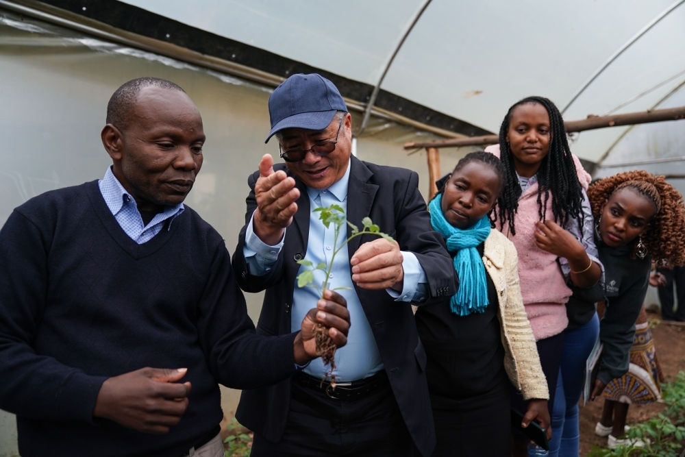 2023年9月18日,在肯尼亞納庫魯郡舉辦的中非農(nóng)業(yè)發(fā)展和減貧示范村番茄生產(chǎn)培訓(xùn)班上,來自中國(guó)的農(nóng)學(xué)教授劉高瓊(左二)為肯方學(xué)員指導(dǎo)農(nóng)業(yè)技術(shù)。多年來,中國(guó)農(nóng)業(yè)專家在當(dāng)?shù)亻_展了知識(shí)培訓(xùn)、技術(shù)指導(dǎo)和農(nóng)業(yè)設(shè)施修繕等工作,有效助力中國(guó)先進(jìn)的農(nóng)業(yè)技術(shù)在納庫魯?shù)貐^(qū)的示范推廣,幫助農(nóng)民實(shí)現(xiàn)增收減貧的目標(biāo)。