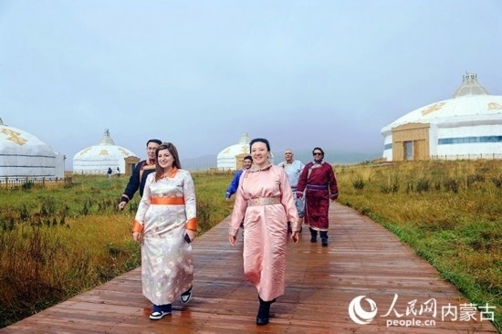 外媒記者在敕勒川草原。人民網(wǎng)記者 張雪冬攝