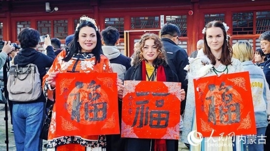 “拿到了孫老師給我們寫的福字,‘福’字正著拿和倒著拿有不同的含義,這是個非常有意思的知識?!睘跛姑伞ぐ⒉范徘『槁宸?qū)χ腥A傳統(tǒng)文化也表現(xiàn)出濃厚的興趣:“在大盛魁我第一次看到了中國的傳統(tǒng)服飾和紅磚綠瓦的傳統(tǒng)建筑,我感到非常幸運。”