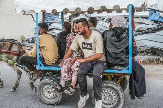 這是10月19日在加沙地帶拍攝的逃離加沙地帶北部杰巴利耶難民營的民眾。新華社發(fā)(馬哈茂德·扎基攝)
