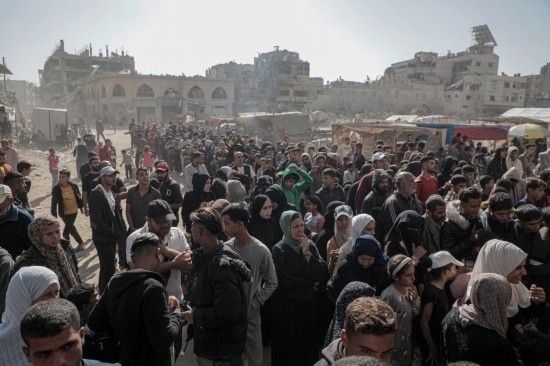 10月23日,人們在加沙地帶南部城市汗尤尼斯唯一還在營業(yè)的大餅店購買大餅。新華社發(fā)(里澤克·阿卜杜勒賈瓦德攝)