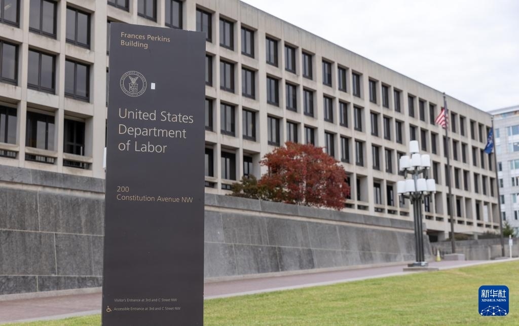 這是11月1日在美國(guó)華盛頓拍攝的勞工部大樓。