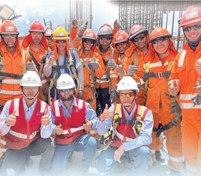 在中企承建的秘魯庫斯科圣安東尼奧國立大學(xué)升級改造項目施工現(xiàn)場,中秘兩國建設(shè)者合影。水 源攝