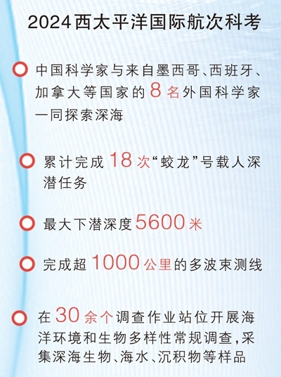 2024西太平洋國際航次科考由自然資源部中國大洋事務(wù)管理局統(tǒng)籌國家深海基地管理中心組織實(shí)施,是“數(shù)字化深海典型生境”大科學(xué)計劃下,首個在公海區(qū)域開展的聯(lián)合科考,也是首次有外國科學(xué)家搭乘“蛟龍”號開展深??瓶?。