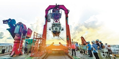 船時6時許(北京時間4時許),遠(yuǎn)處天際依然泛著青灰色,母船“深海一號”船上已是一片繁忙景象。作業(yè)區(qū)天氣晴朗,潛航人員和技術(shù)保障團(tuán)隊各司其職。一系列準(zhǔn)備工作就緒后,“蛟龍”號艙蓋關(guān)閉,深海之旅即將開啟。
