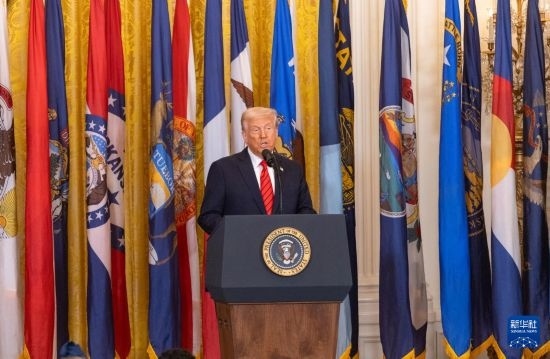 3月20日,美國(guó)總統(tǒng)特朗普在華盛頓白宮簽署行政令前講話。 新華社記者 胡友松 攝