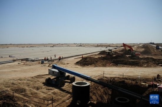 這是4月8日在伊拉克濟(jì)加爾省拍攝的由中國建筑集團(tuán)有限公司承建的納西里耶國際機(jī)場項(xiàng)目施工現(xiàn)場。新華社記者 段敏夫 攝