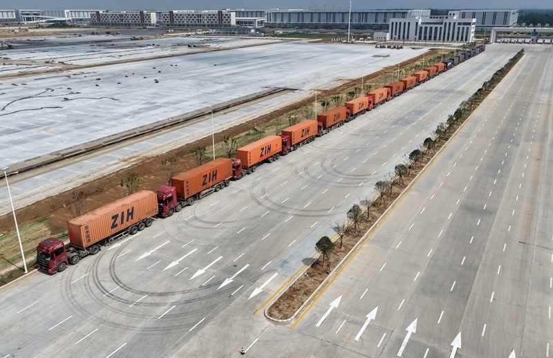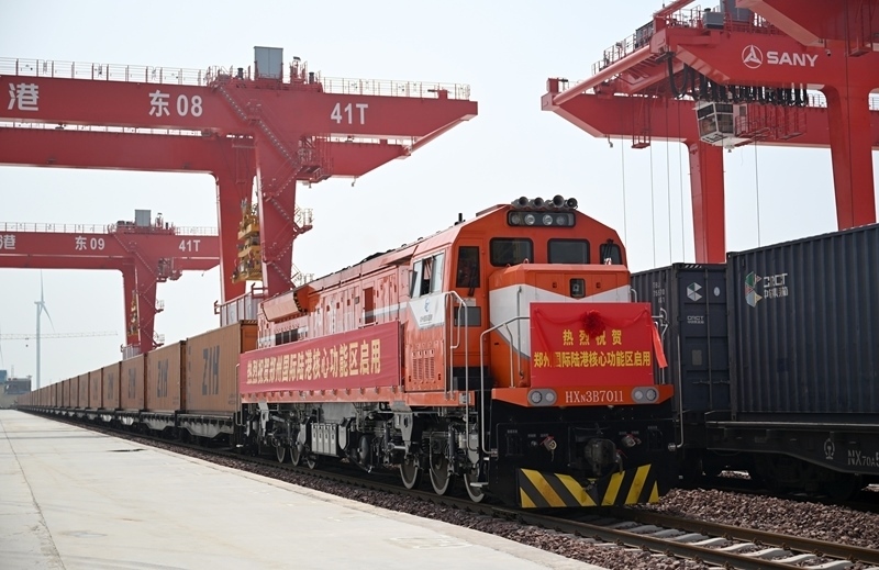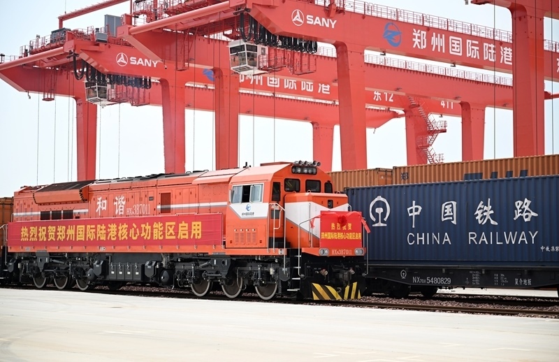6月28日,一班列車在鄭州國(guó)際陸港核心功能區(qū)啟動(dòng)運(yùn)行。