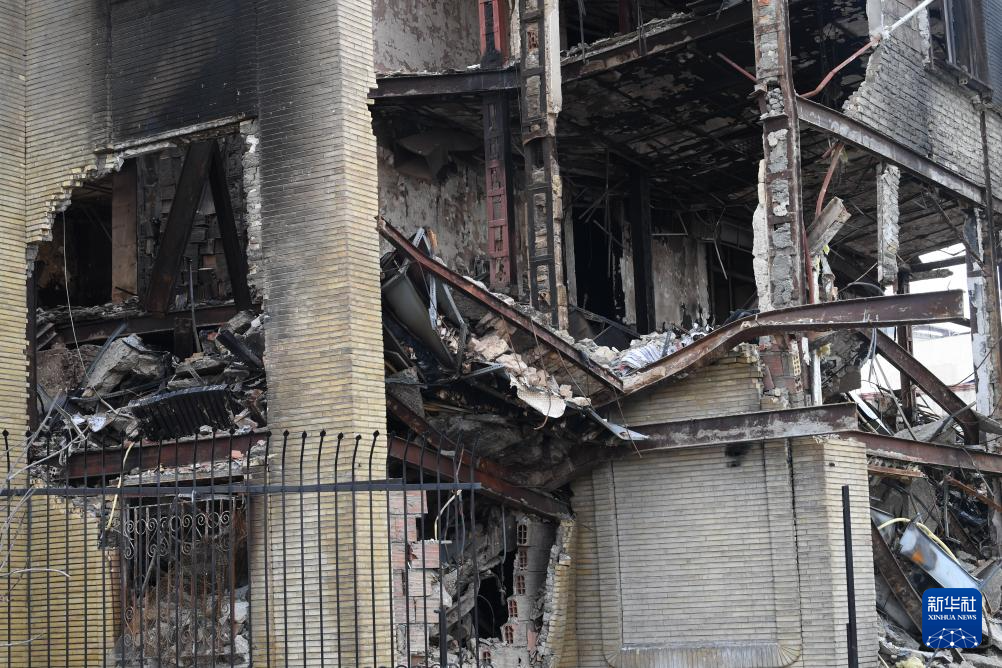 這是1月21日在伊朗首都德黑蘭拍攝的在近期騷亂中受損的一處稅務局建筑。新華社記者 沙達提 攝