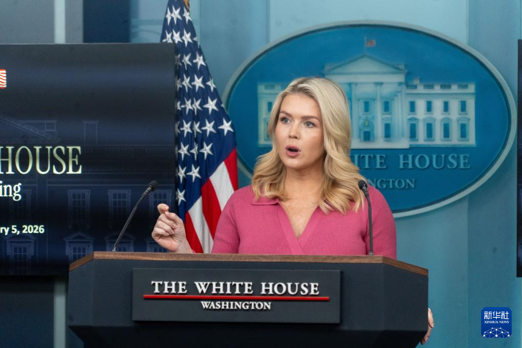 2月5日,在美國(guó)首都華盛頓白宮,白宮新聞秘書(shū)萊維特出席記者會(huì)。新華社發(fā)(李源清攝)