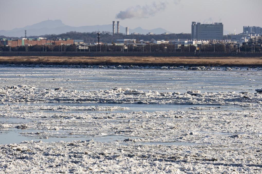 這是1月25日在韓國漢江京畿道流域拍攝的浮冰。新華社發(fā)(全休相攝)