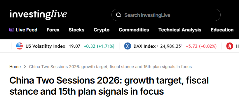 美國知名財經(jīng)網(wǎng)站Investinglive重點新一年度政府工作報告,該報告通常會設定年度主要目標和政策任務,并最清晰地傳遞出中央政府的宏觀政策取向。