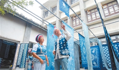 英國(guó)籍視頻博主斯圖爾特·維金在云南大理體驗(yàn)白族扎染技藝。