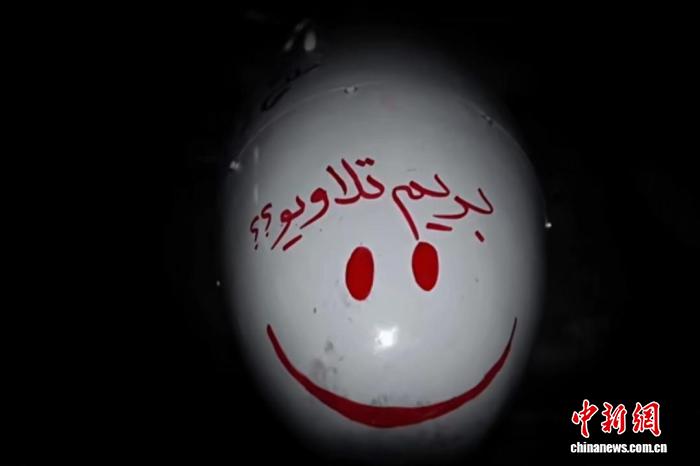 伊朗法爾斯通訊社發(fā)布的圖片顯示,伊朗伊斯蘭革命衛(wèi)隊向以色列特拉維夫發(fā)射的“目擊者-136”無人機,彈頭上用波斯語寫著“我們?nèi)ヌ乩S夫吧”,并畫了個笑臉。