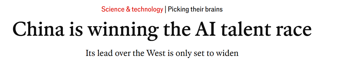 英國《經(jīng)濟學人》雜志網(wǎng)站近日發(fā)表題為《中國正贏得人工智能人才競賽》的文章。文章認為,中國領(lǐng)先于西方國家的人才優(yōu)勢正在擴大。