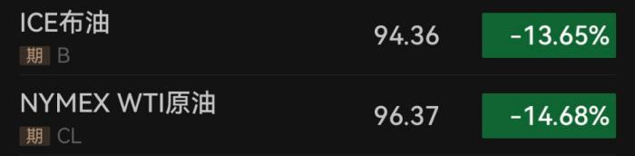 伴隨股市大漲,國際油價、貴金屬價格也出現(xiàn)大幅波動。國際市場原油價格“高臺跳水”,截至8日13:00,WTI原油期貨盤中一度跌幅超過19%,跌破每桶100美元關(guān)口,達91.05美元/桶。布倫特原油期貨一度跌超16%,達最低91.7美元/桶。