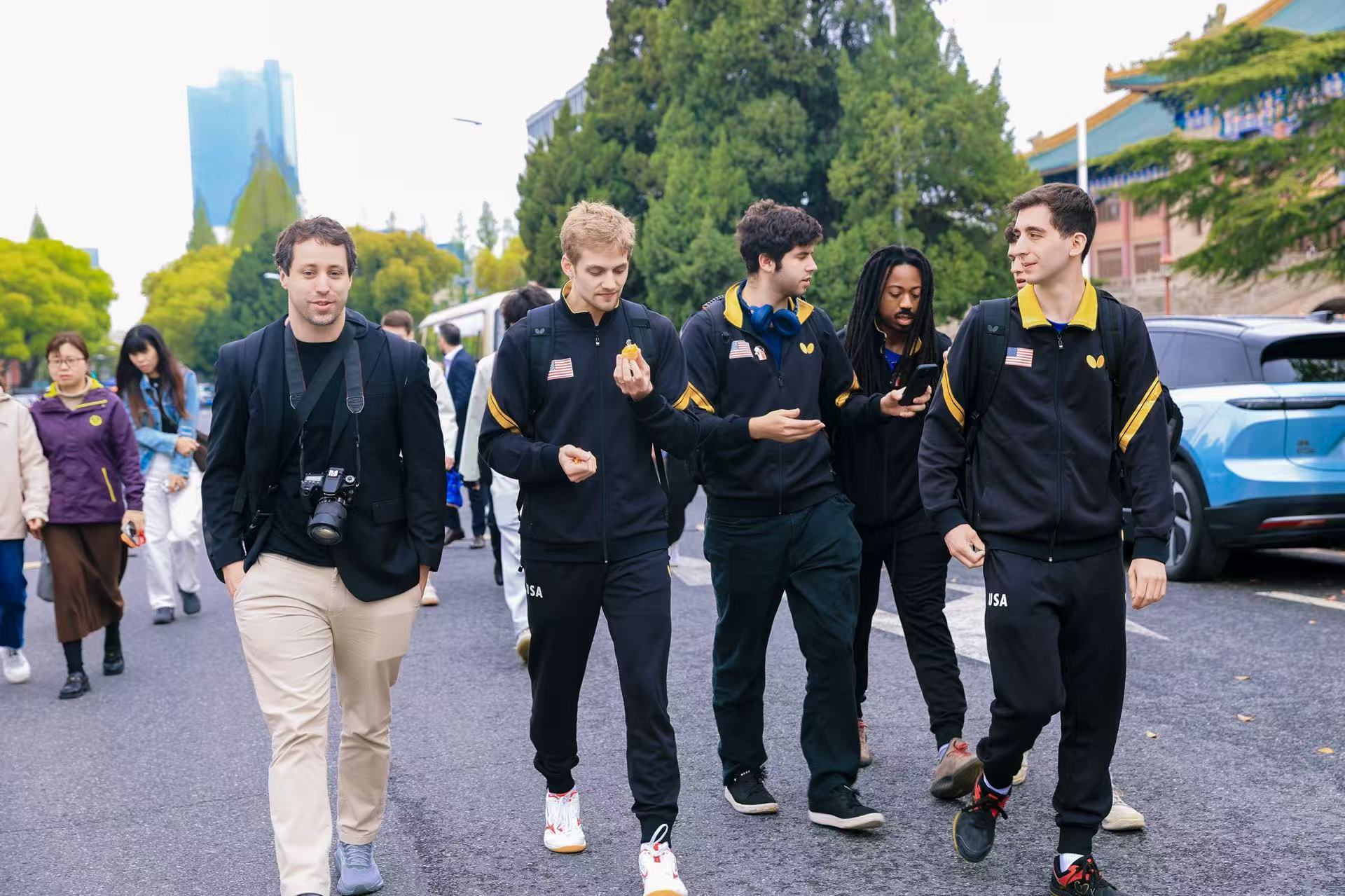 美國乒協(xié)記者喬希·戴科(左一)在上海街頭