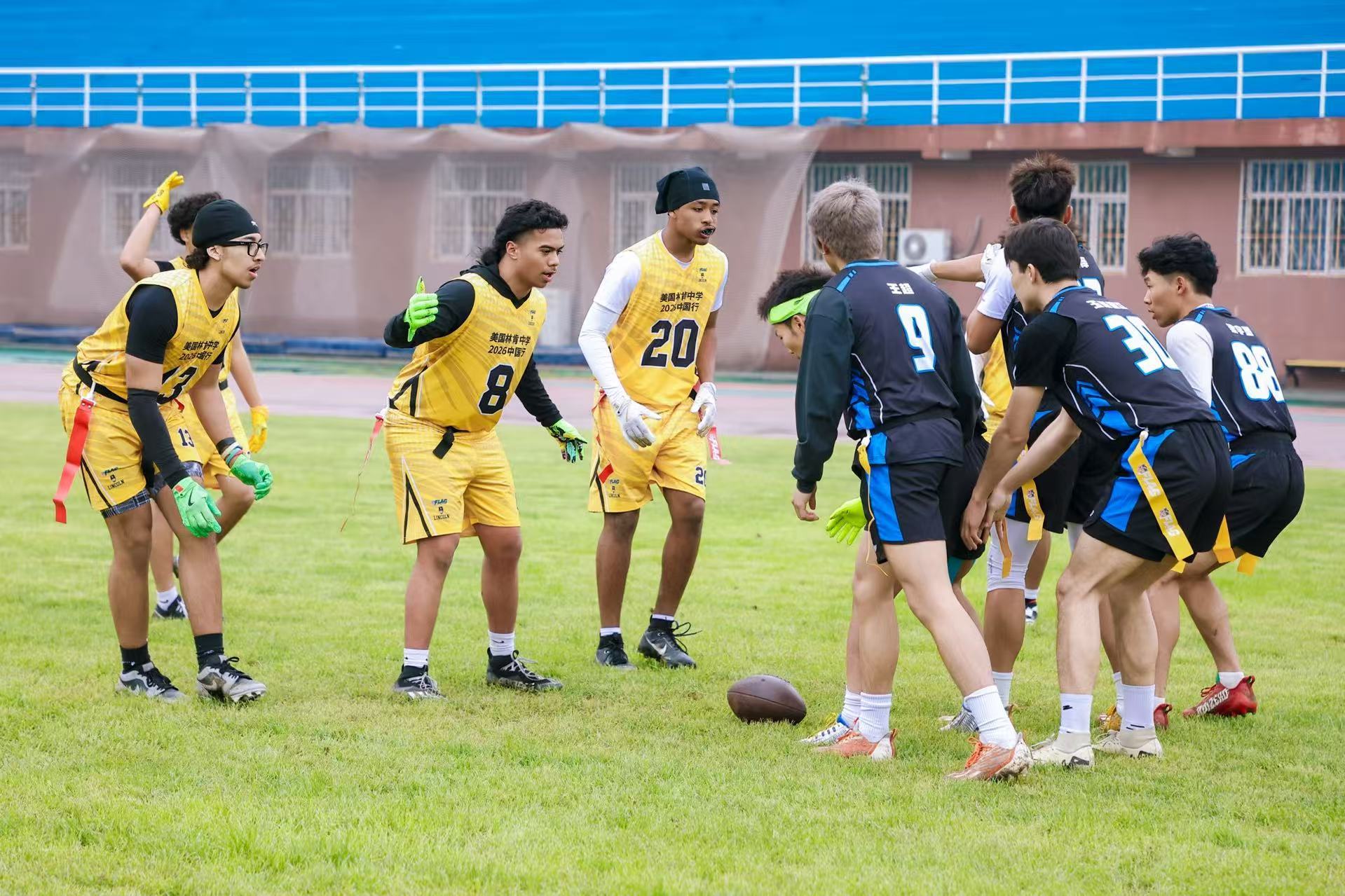 美國華盛頓州塔科馬市林肯中學(xué)腰旗橄欖球隊(duì)到訪北京首都體育學(xué)院 與該校的腰旗橄欖球社團(tuán)展開友誼賽
