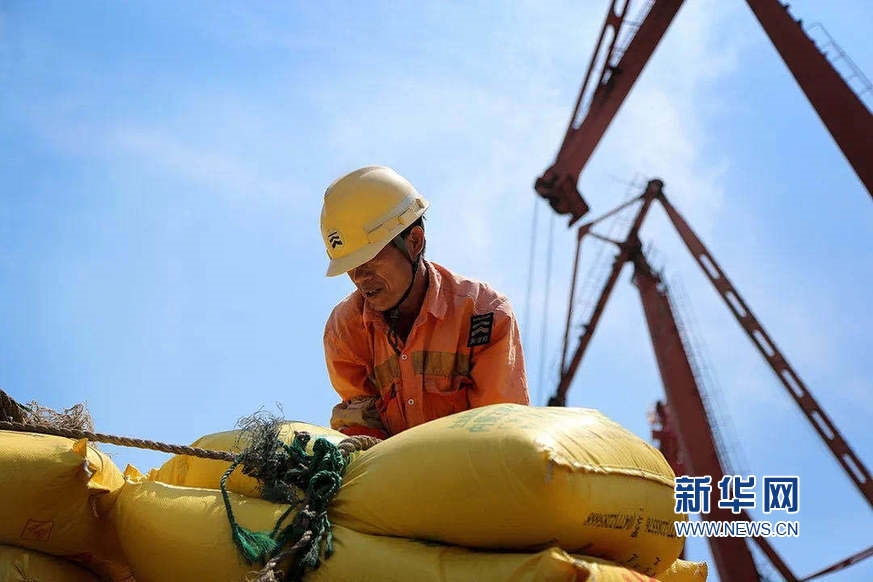 一線安監(jiān)員冒著酷暑在碼頭現(xiàn)場指揮裝卸工人安全吊裝作業(yè)。新華網(wǎng)發(fā)