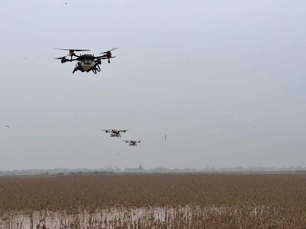 “地不凍,只管種?!笔罘逭f,無人機(jī)的快速撒播可以讓種子在土地上凍前及時(shí)入土,而且播撒均勻,省時(shí)省力,一架無人機(jī)一天可以飛播300畝以上,確保小麥及時(shí)足額足面積播種。