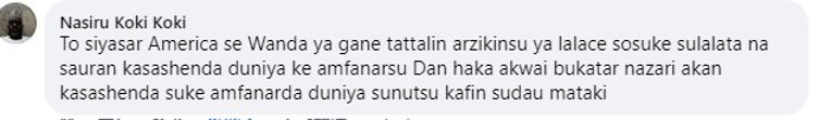 尼日利亞網(wǎng)友納斯魯(Nasiru Koki Koki)留言:“正是美國自身經(jīng)濟(jì)的衰退,使得它如此迫切地想要阻止其他國家的經(jīng)濟(jì)發(fā)展,面對美國的挑釁,中國應(yīng)采取審慎的態(tài)度?!?/p>