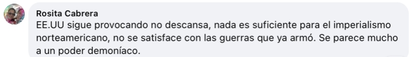 烏拉圭網(wǎng)友Rosita Cabrera:“美國一直在挑釁,不眠不休,對美帝國主義來說什么都不夠,它不滿足于已經(jīng)發(fā)動(dòng)的那些戰(zhàn)爭,它就是邪惡勢力。”