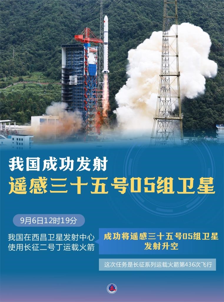 9月6日12時(shí)19分,我國在西昌衛(wèi)星發(fā)射中心使用長征二號(hào)丁運(yùn)載火箭,成功將遙感三十五號(hào)05組衛(wèi)星發(fā)射升空。衛(wèi)星順利進(jìn)入預(yù)定軌道,發(fā)射任務(wù)獲得圓滿成功。新華社發(fā)(張夢(mèng)玉攝)