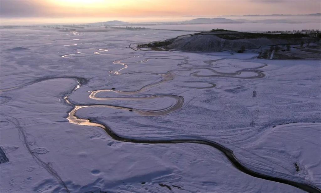 這是位于張家口市沽源縣的冬季閃電河濕地冰雪風(fēng)光(2021年3月13日攝,無人機(jī)照片)。新華社發(fā)