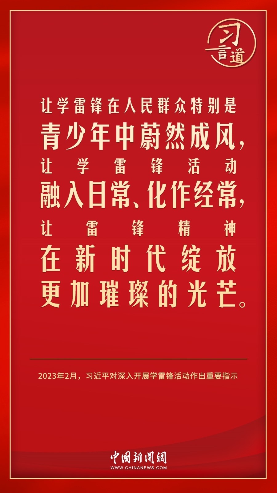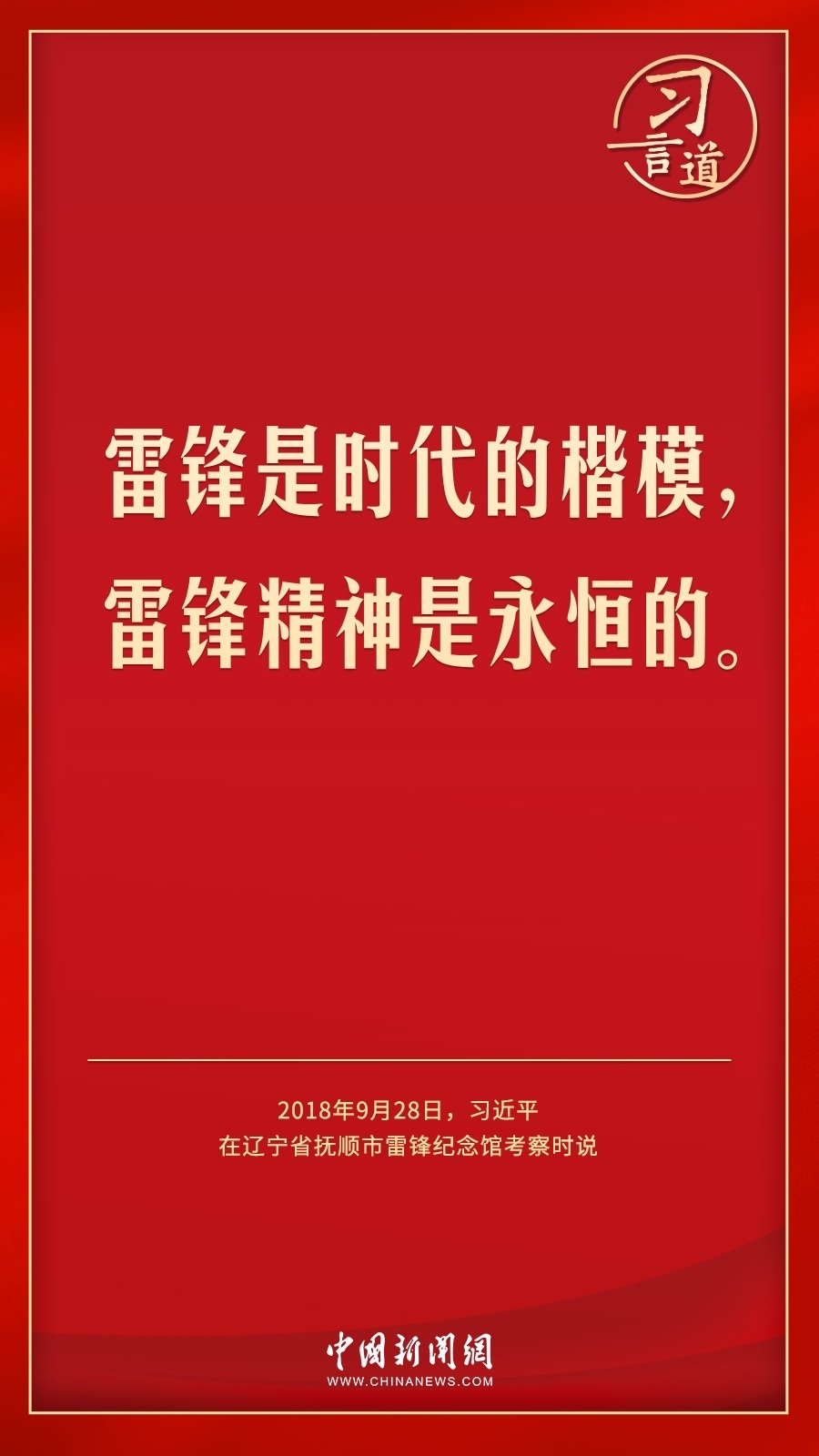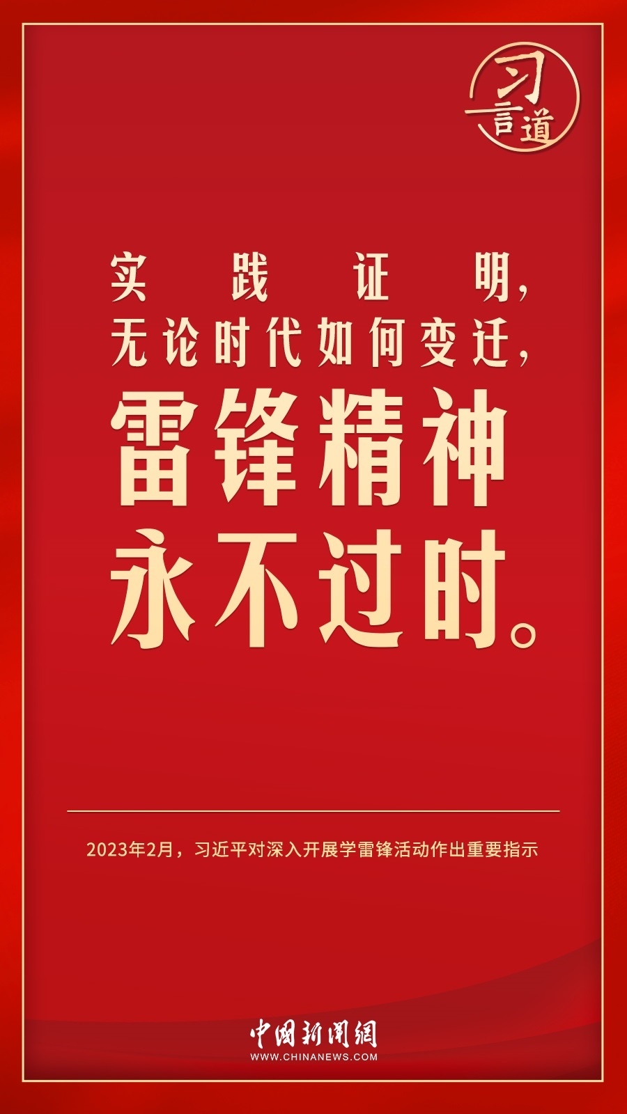 今年是毛澤東等老一輩革命家為雷鋒同志題詞60周年。黨的十八大以來,習(xí)近平總書記就學(xué)習(xí)弘揚(yáng)雷鋒精神多次作出重要指示,他強(qiáng)調(diào),無論時(shí)代如何變遷,雷鋒精神永不過時(shí)。