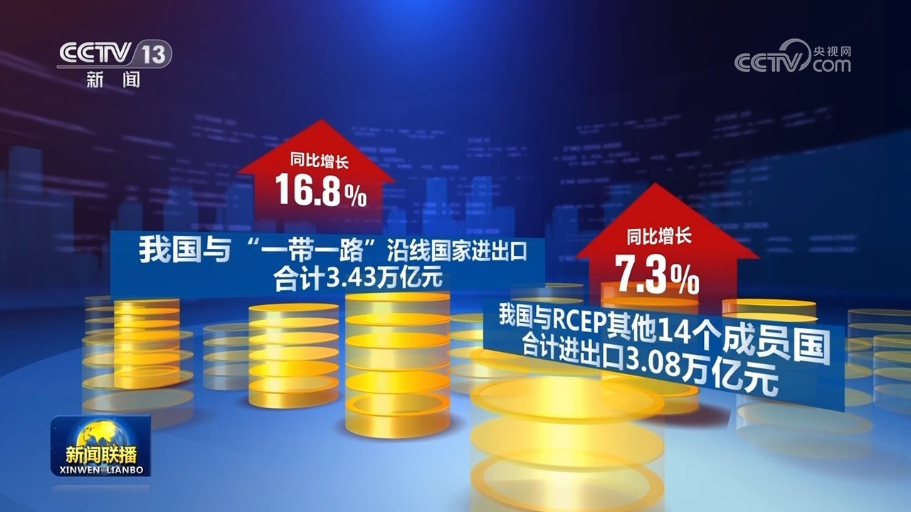 同期,我國與“一帶一路”沿線國家進(jìn)出口合計(jì)3.43萬億元,同比增長16.8%。我國與RCEP其他14個成員國合計(jì)進(jìn)出口3.08萬億元,同比增長7.3%。