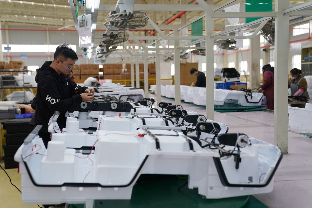 3月16日,工人在河北省邢臺經(jīng)濟開發(fā)區(qū)一家外貿(mào)企業(yè)生產(chǎn)車間組裝童車產(chǎn)品。新華社記者 駱學(xué)峰 攝