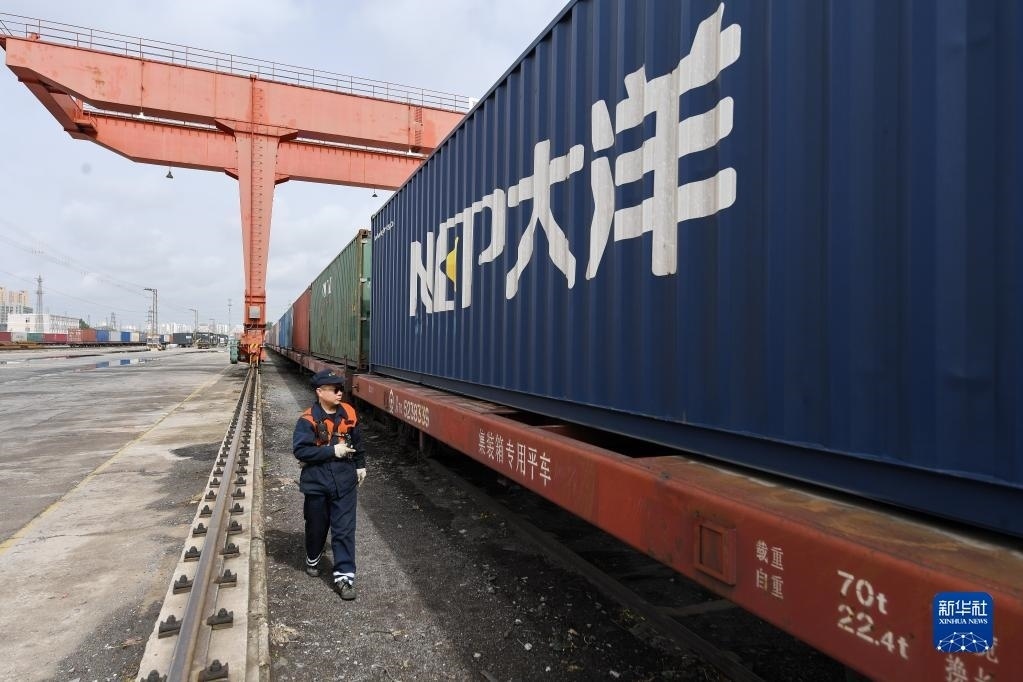 當(dāng)日,河北省廊坊市正式開(kāi)通中歐(中亞)班列(廊坊——塔什干)。首列開(kāi)行的集裝箱班列編組55輛,由廊坊北鐵路貨場(chǎng)始發(fā),經(jīng)霍爾果斯口岸出境,途經(jīng)哈薩克斯坦,最終抵達(dá)烏茲別克斯坦塔什干,全程約6000公里,預(yù)計(jì)運(yùn)行時(shí)間約15天,貨物總重量1400余噸,主要包括保溫管、機(jī)械設(shè)備、型材等。新華社發(fā)(劉向攝)