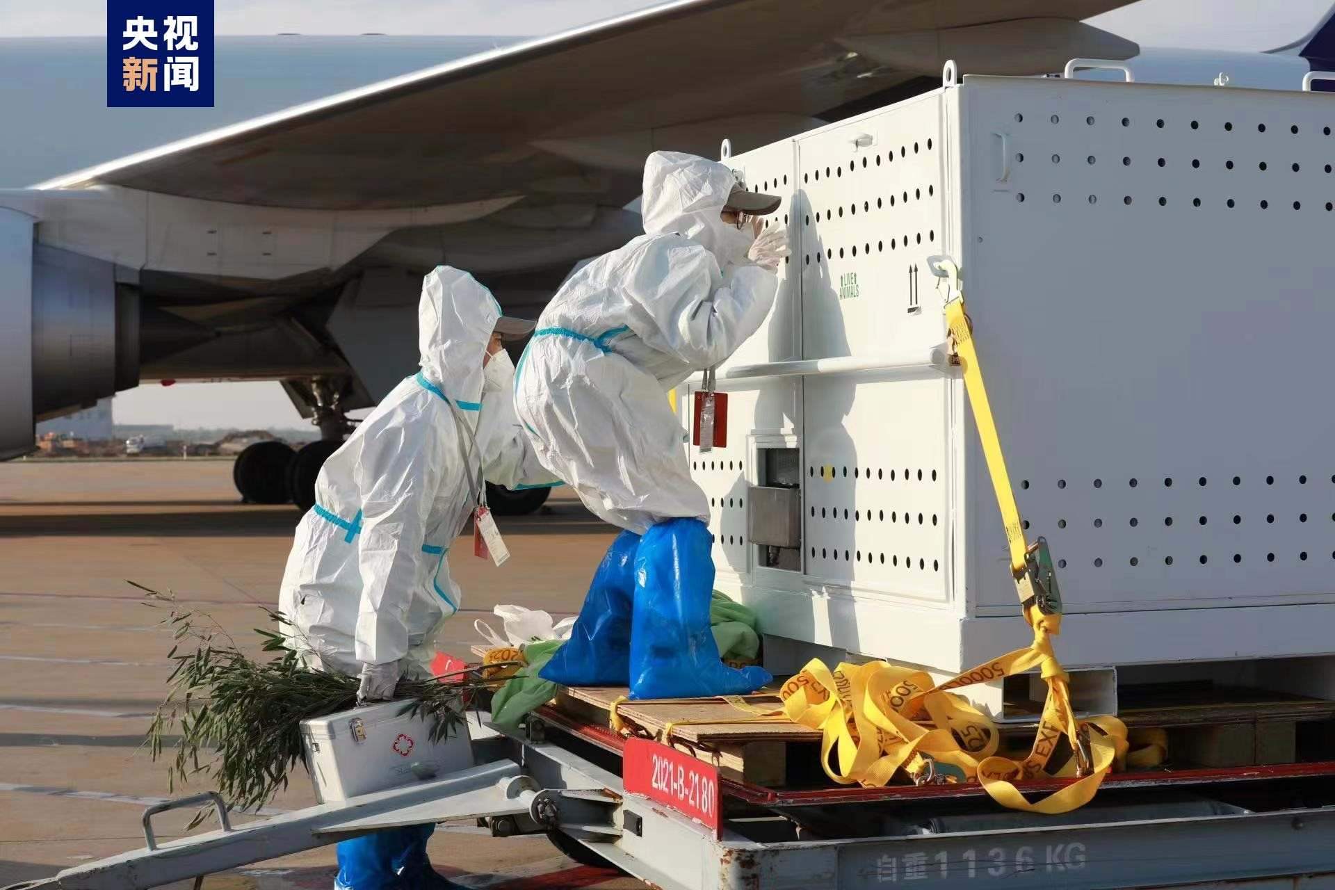 旅美大熊貓“丫丫”順利回國(guó) 前往封閉隔離檢疫區(qū)