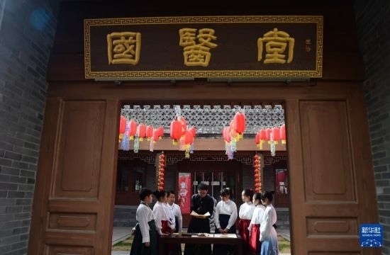 3月28日,參加公益研學(xué)活動(dòng)的學(xué)生在滄州中西醫(yī)結(jié)合醫(yī)院南川老街國醫(yī)堂辨識(shí)中藥。