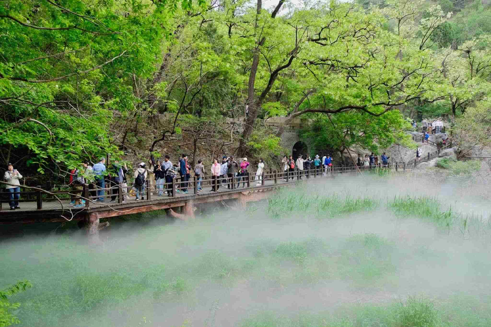 2023年5月6日,北京,立夏時(shí)節(jié),萬物繁茂,國(guó)家植物園櫻桃溝景區(qū)“云霧繚繞”宛若“仙境”。視覺中國(guó)