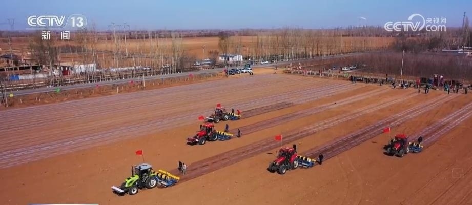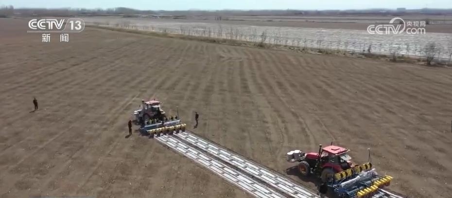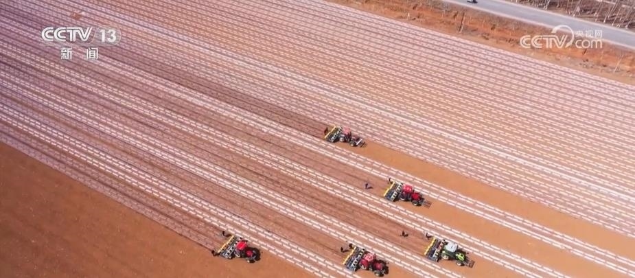 眼下,新疆瑪納斯縣65萬畝棉花全面開播。在文家莊村的棉田里,五臺裝有北斗導(dǎo)航系統(tǒng)的大馬力拖拉機(jī),正按照預(yù)先設(shè)定的播種線路,進(jìn)行精量播種。