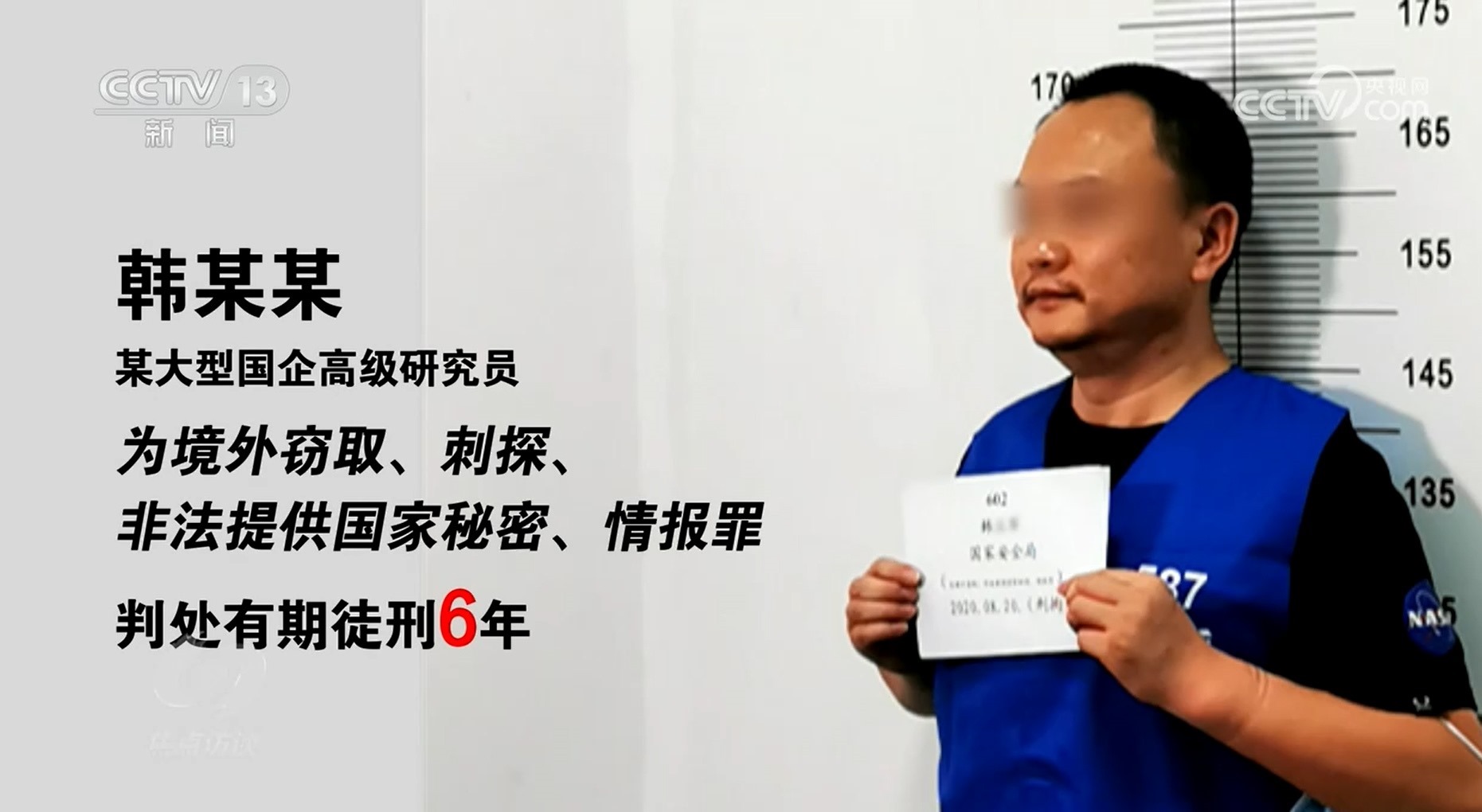 韓某某,我國某大型國企高級(jí)研究員,因?yàn)榫惩飧`取、刺探、非法提供國家秘密、情報(bào)罪,被判處有期徒刑6年。