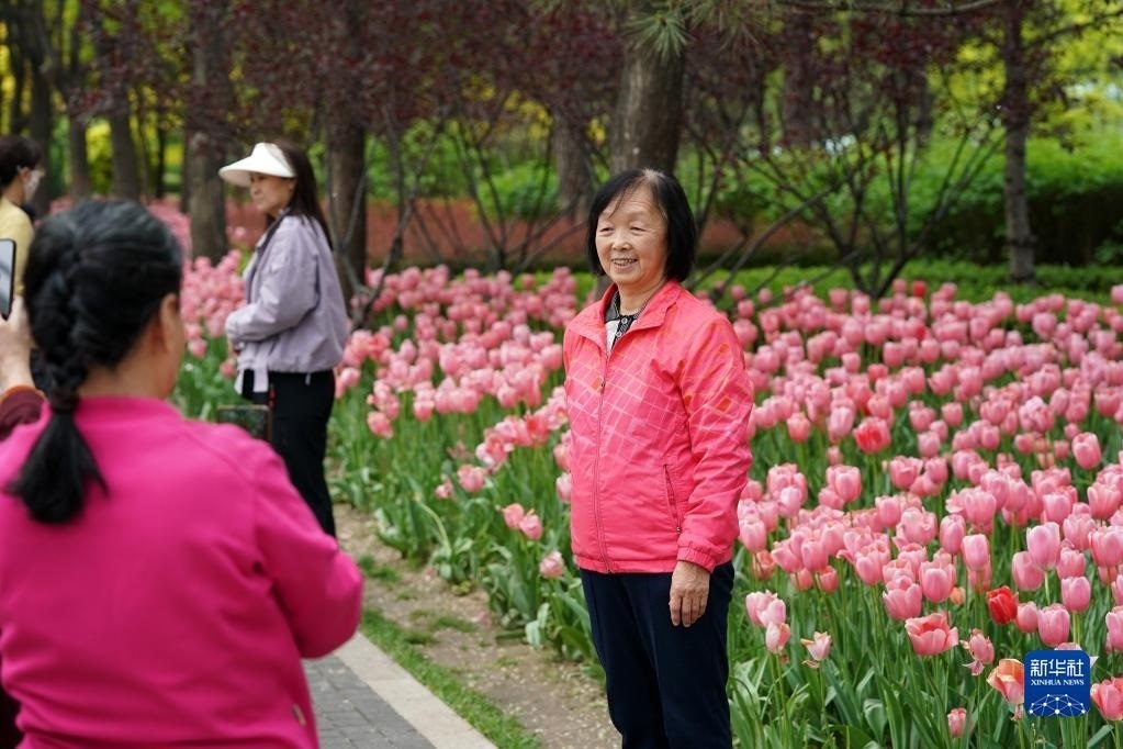 近日,山西省太原市迎澤公園內(nèi)各色郁金香競(jìng)相綻放,吸引游人前來(lái)觀花賞景。新華社記者 詹彥 攝