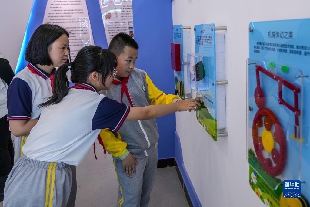 5月11日,小學(xué)生在馬店村科普體驗(yàn)中心內(nèi)體驗(yàn)科普展品。