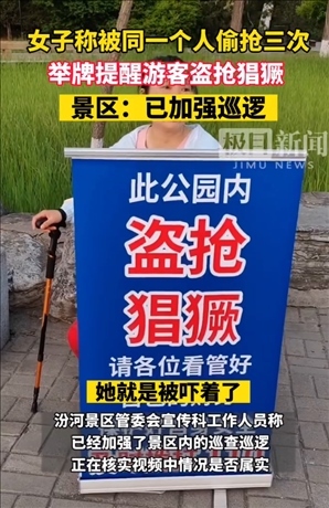 ·景區(qū)回應(yīng)女子舉牌提醒公園盜搶猖獗:正在核實,已加強巡邏。