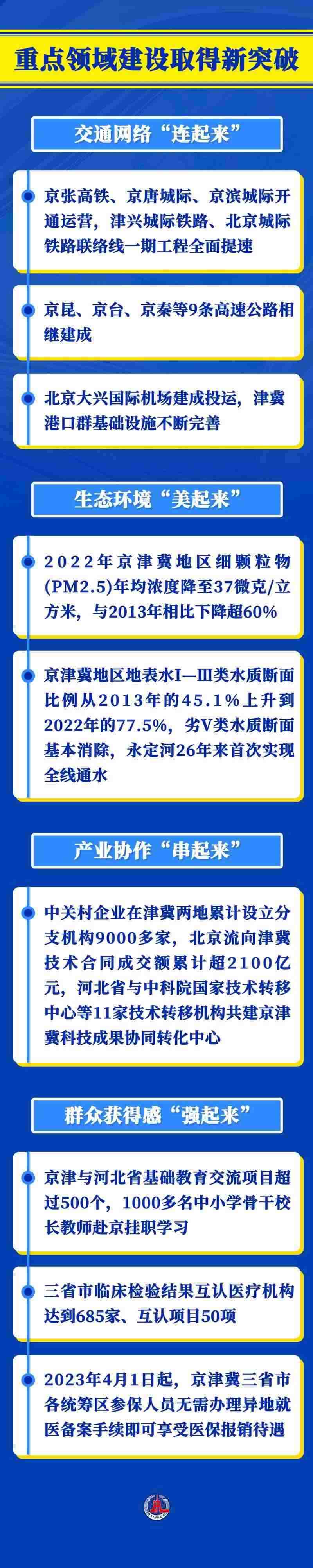 京津冀協(xié)同發(fā)展是一個(gè)系統(tǒng)工程。9年多來,三地?cái)y手發(fā)力,重點(diǎn)區(qū)域協(xié)同發(fā)展步穩(wěn)蹄疾,交通、環(huán)境、產(chǎn)業(yè)、公共服務(wù)等重點(diǎn)領(lǐng)域建設(shè)不斷取得新突破。