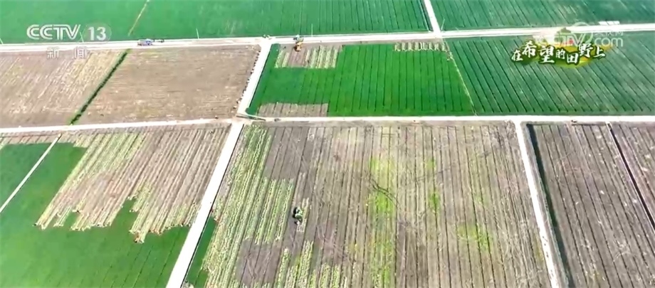 從空中俯瞰,綠油油的香蔥點綴在溝河交錯圍成的垛田上,農(nóng)民們駕船而至,在垛上采收,一派忙碌景象。