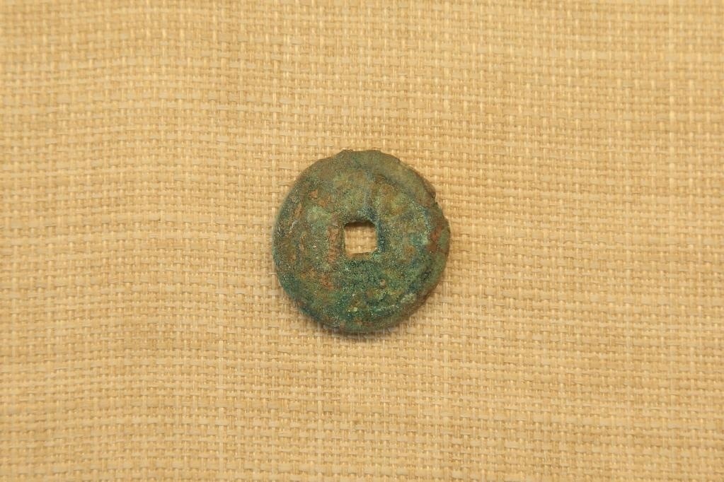 托庫(kù)孜薩來(唐王城)遺址發(fā)掘出土并展出的乾元重寶。(賀浩攝)
