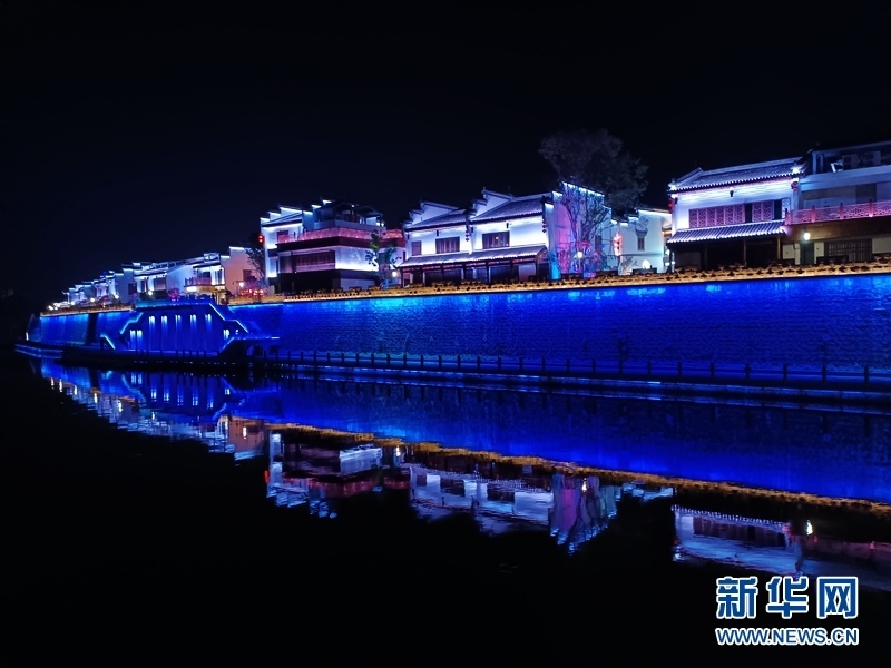 夜幕下的新安江畔。新華網(wǎng)李東標 攝