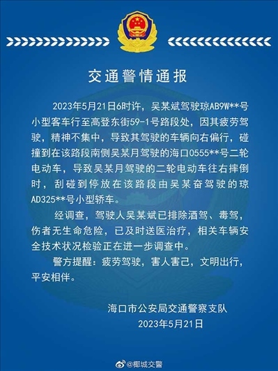 ·??诮痪▓?bào)“一車輛沖上綠化帶撞倒環(huán)衛(wèi)工人”:司機(jī)疲勞駕駛,傷者無生命危險(xiǎn)。