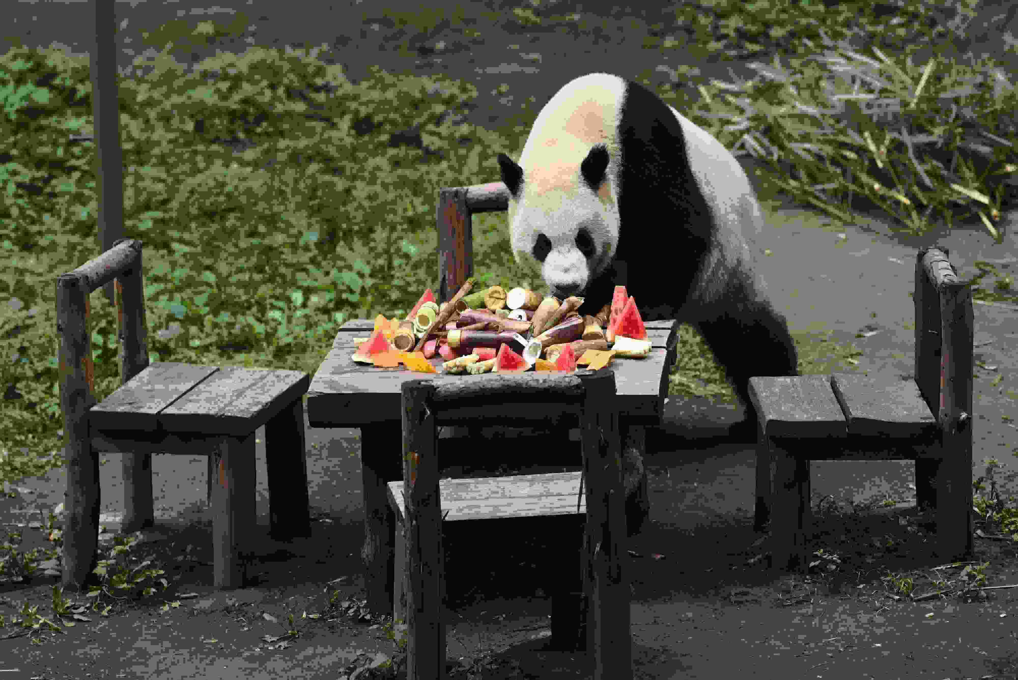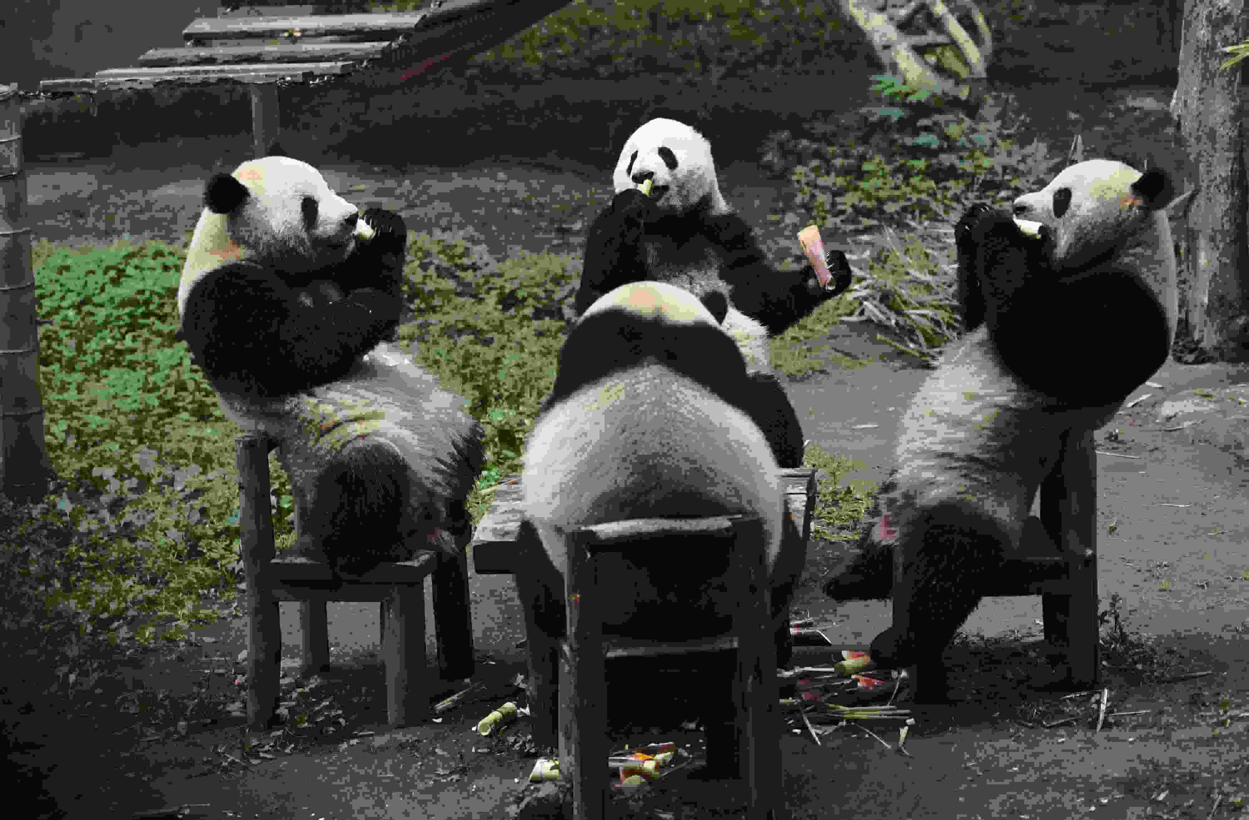 重慶:大熊貓圍桌共享大餐