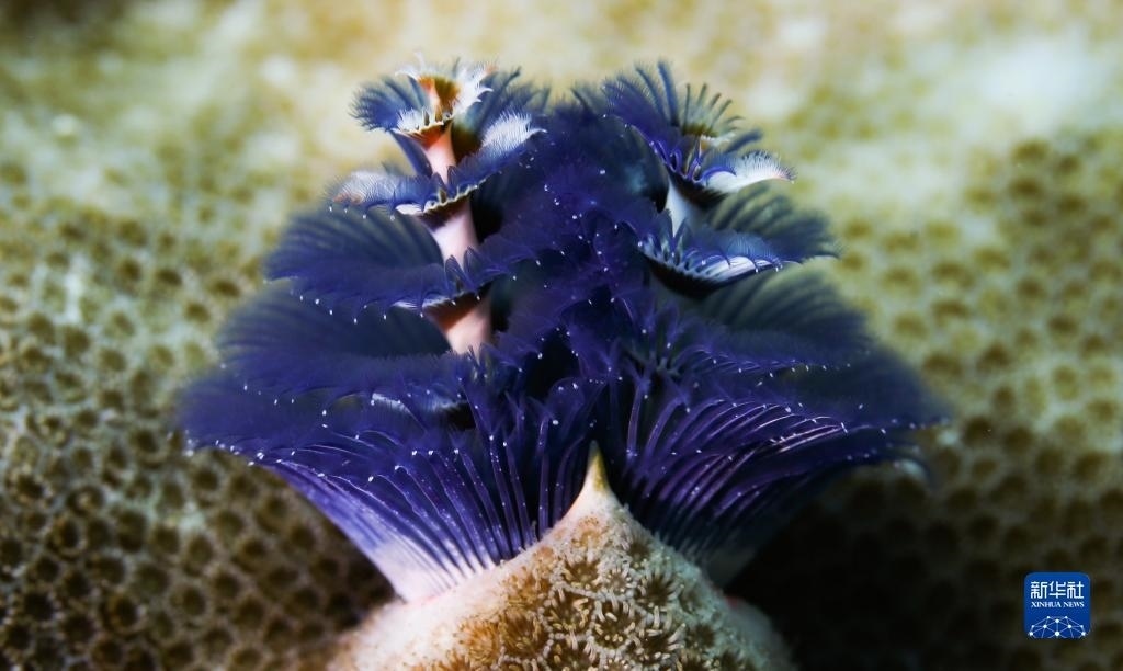 這是在蜈支洲島海域海洋牧場(chǎng)拍攝的圣誕樹(shù)管蟲(2021年5月23日攝)。
