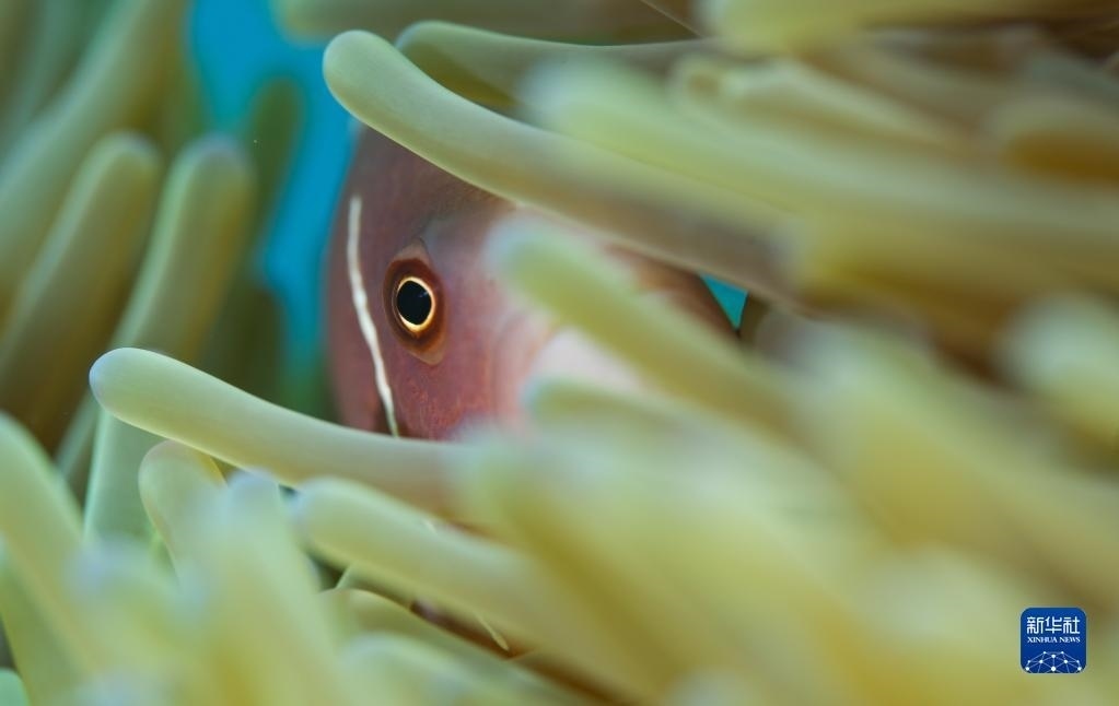 這是在蜈支洲島海域海洋牧場(chǎng)拍攝的小丑魚(5月17日攝)。 新華社記者 楊冠宇 攝
