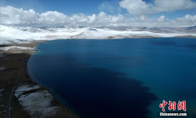 俯瞰“仙女之淚”西藏山南普姆雍措。
