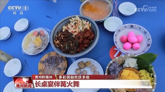 貴州黔南州:長桌宴伴篝火舞